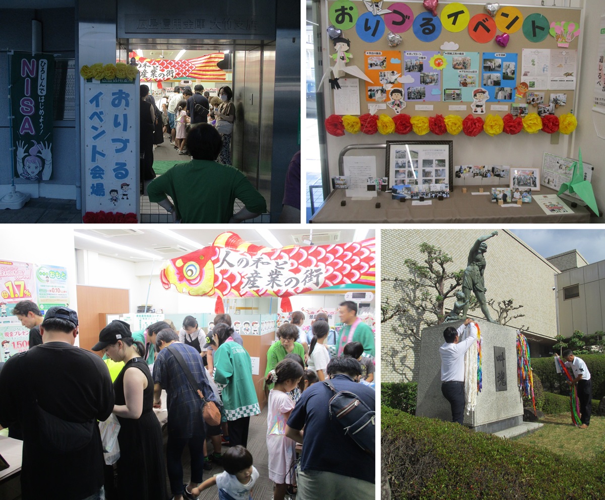 大竹支店では、2025年8月2日(土)に開催された大竹駅前商店街「土曜夜市」に出展し、折鶴作成イベントを開催しました。